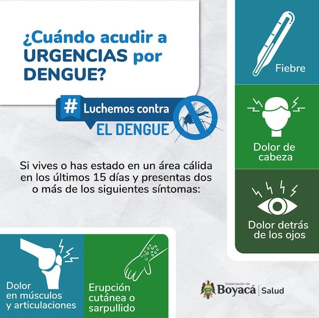 De acuerdo con las estadísticas que maneja la secretaría de Salud del departamento se están registrando entre 15 y 20 casos semanales en diferentes regiones de Boyacá, por tal razón es importante que las personas que viajen o hayan viajado a clima cliente tengan en cuenta los síntomas que se presentan cuando son picados por el dengue.