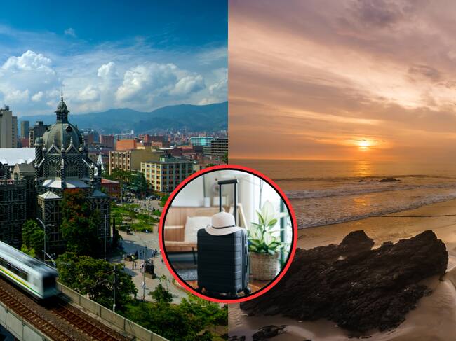 Medellín, playa en Bahía Solano y maleta viajera (Getty Images)