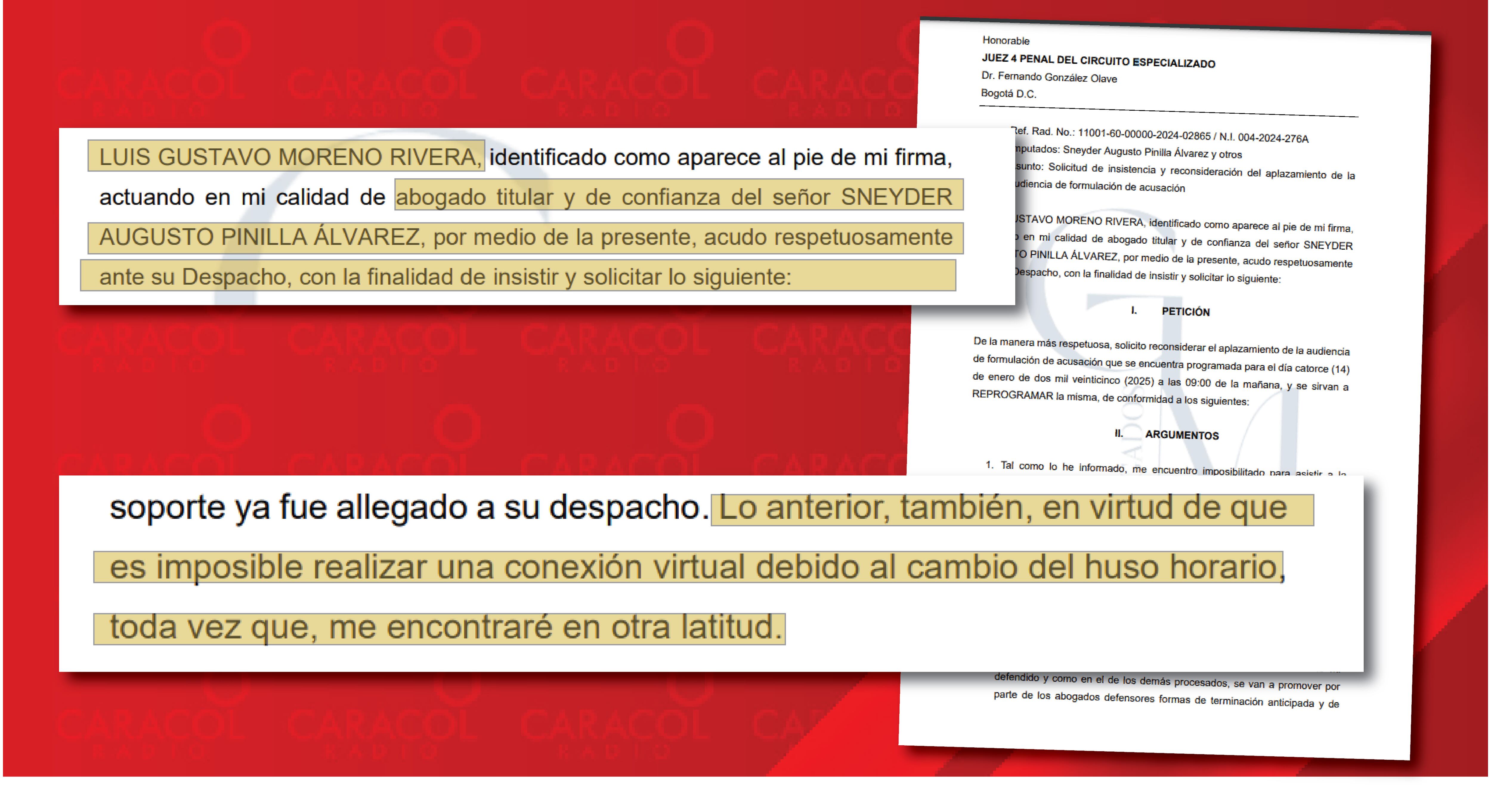 Resulta que, desde el 18 de diciembre, los hermanos Moreno enviaron excusa al juez pidiendo el aplazamiento porque se no estarán Colombia, el juez hasta ese momento negó el aplazamiento.