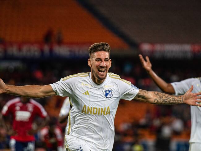 Santiago Giordana festeja un gol con Millonarios ante el Medellín. (Photo by: Camilo Moreno/Long Visual Press/Universal Images Group via Getty Images) / Long Visual Press