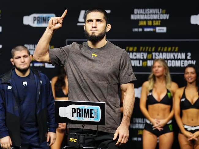 Islam Makhachev, actual campeón de la categoría de peso ligero en UFC en el pesaje oficial para el evento del sábado 18 de enero. / (Photo by Jeff Bottari/Zuffa LLC) / Jeff Bottari