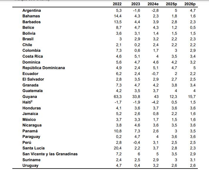 Según las previsiones, el crecimiento de Argentina, que encabeza la lista, experimentará una recuperación de aproximadamente un 4,8% anual tras dos años de recesión. Le sigue Paraguay, que al cierre de 2024 registraba un aumento en su producción del 3,6%.
