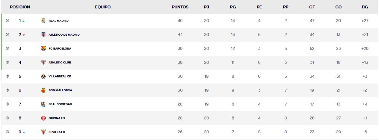 Tabla de posiciones del fútbol español / LaLiga