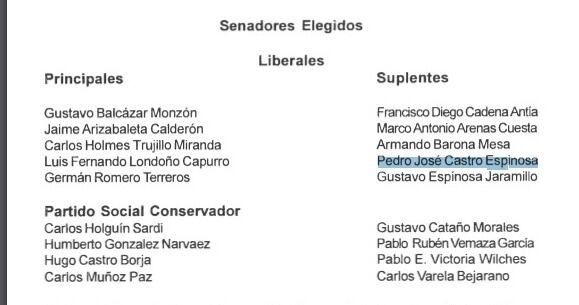 Cabe resaltar que Castro Espinosa es un político vallecaucano que estuvo como senador suplente en 1990 para la época de la séptima papeleta.