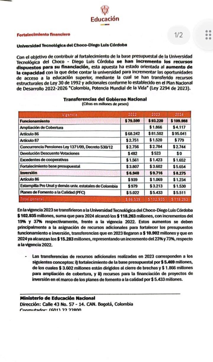 ¿Dónde están los $118.000 millones que giró MinEducación a la Universidad Tecnológica del Chocó?