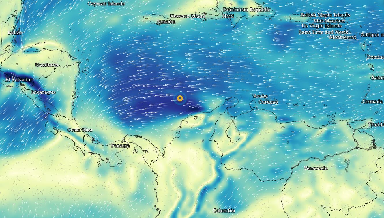 En el mar Caribe, se observa la interacción entre un sistema de altas presiones ubicado en el Atlántico Norte y un sistema de baja presión localizado sobre el centro del litoral colombiano.