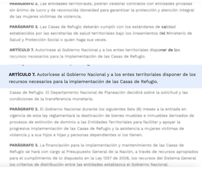 Ley 2215 de 2022, indica que los entes territoriales deben disponer de los recursos necesarios para las Casas Refugio.