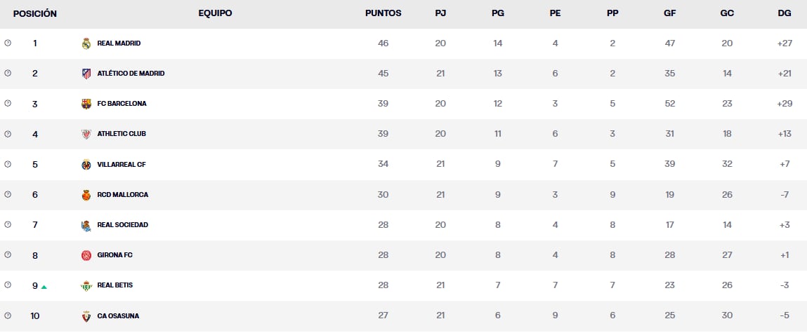 Tabla de posiciones de LaLiga