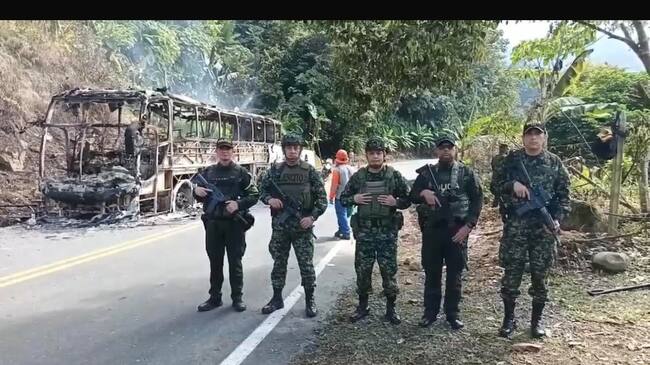 Bus incinerado en Dabeiba se debió a fallas mecánicas y no a un ataque terrorista: Ejército