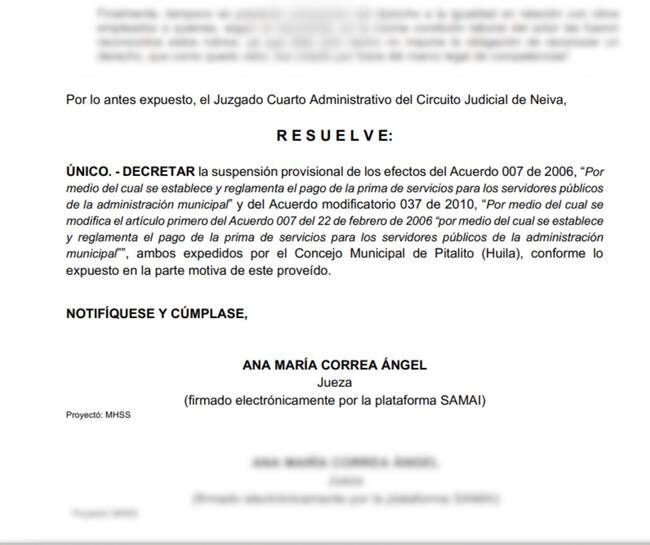 El Juzgado Cuarto Administrativo del Circuito Judicial de Neiva, decretó la suspensión provisional de los efectos de los Acuerdos.