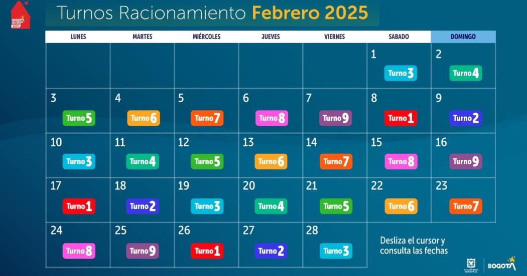 A continuación, le dejamos los turnos de racionamiento de agua en Bogotá por día durante el mes de febrero de 2025: