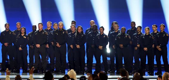 Los fondos recaudados se destinarán para la reconstrucción de las zonas afectadas por los devastadores incendios que hubo en Los Ángeles por tres semanas, a los bomberos los honraron en esta ceremonia.