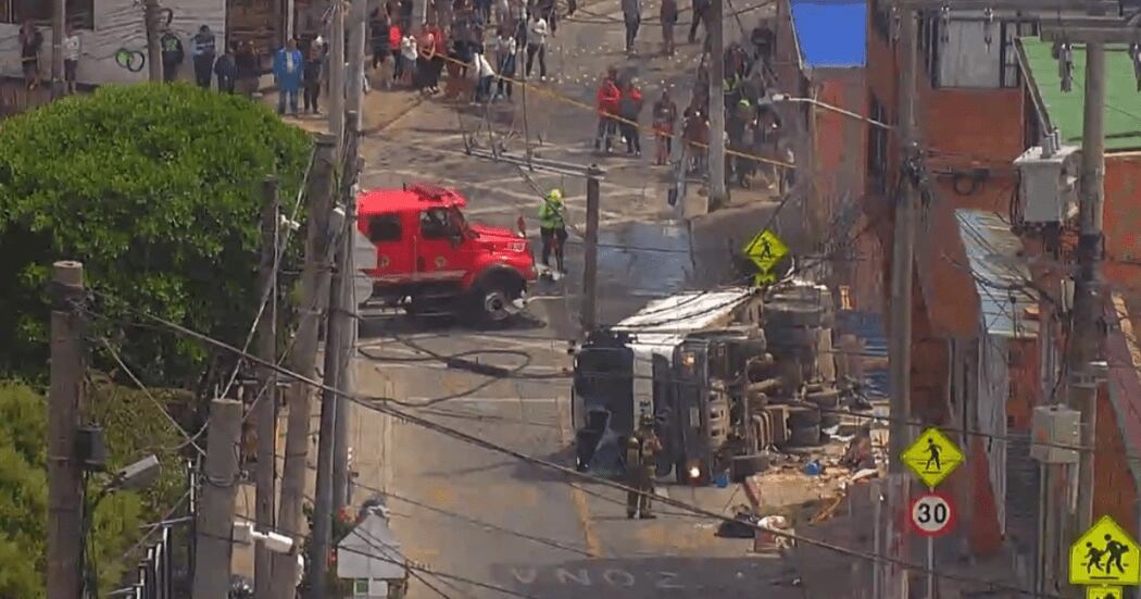 El accidente ocurrió en la Calle 80A Sur con Carrera 18C, cuando el camión perdió el control y colisionó contra un poste de acero. Sin embargo, el impacto no se detuvo ahí, pues el vehículo terminó chocando contra una vivienda. A raíz del golpe, una tubería de gas natural resultó afectada, generando una fuga que alertó a los residentes del sector.