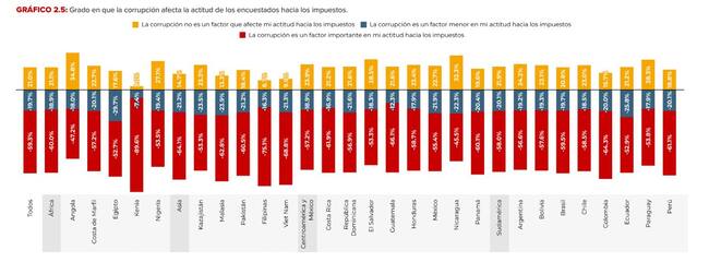 - (Perú) La corrupción es un factor importante en mi actitud hacia los impuestos: -61,1