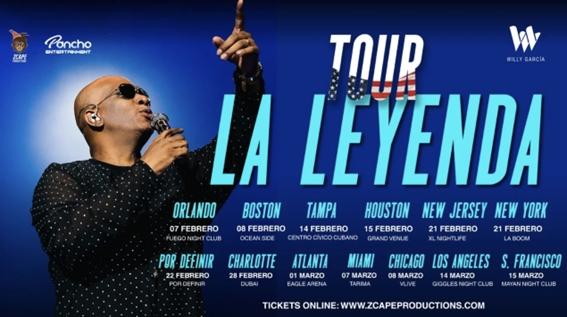 Willy García, la voz más influyente y una de las más queridas de la salsa colombiana, regresa a Estados Unidos con su esperado Tour ‘La Leyenda’. Del 7 de febrero al 15 de marzo de 2025, Willy se presentará en más de 13 ciudades llevando la esencia de la salsa con sello colombiano, cautivando a los salseros con su carisma inigualable y su potente interpretación.