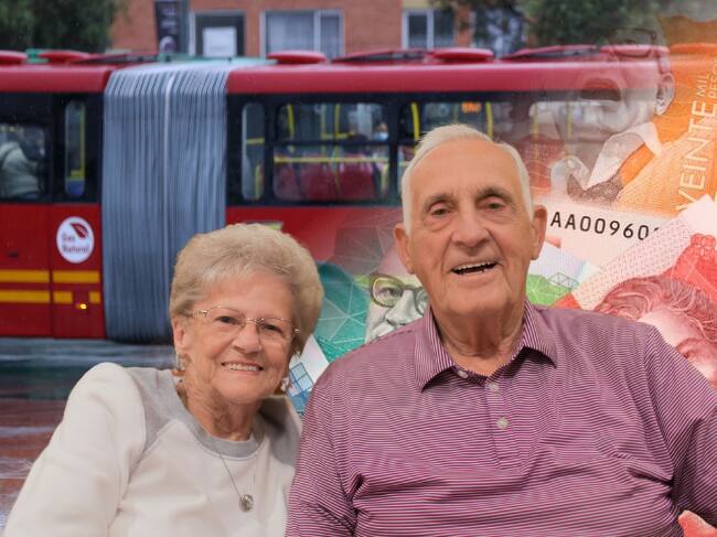 Adultos mayores, imagen de referencia (Getty Images); Transmilenio (Colprensa); Billetes colombianos, tomada de Canva.