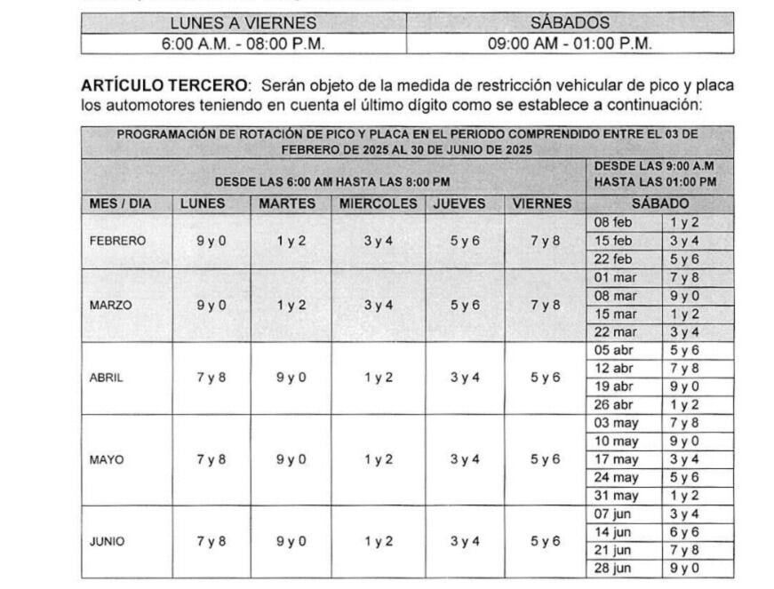 A partir del 1 de marzo y hasta el 30 de junio rige el pico y placa metropolitano.