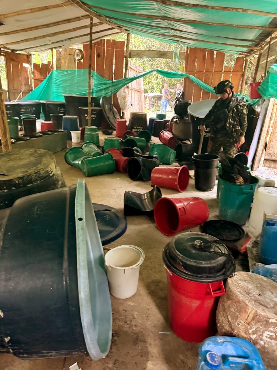 En la operación fueron incautados y destruidos insumos sólidos y líquidos para el procesamiento del estupefaciente.