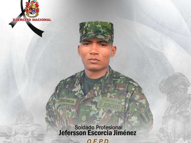 Caracol Radio conoció que el soldado profesional Jefersson Escorcia Jiménez perdió la vida al ser víctima de una mina antipersonal, cuando tropas de la Segunda Brigada del Ejército Nacional desarrollaban operaciones militares para proteger a la población civil.