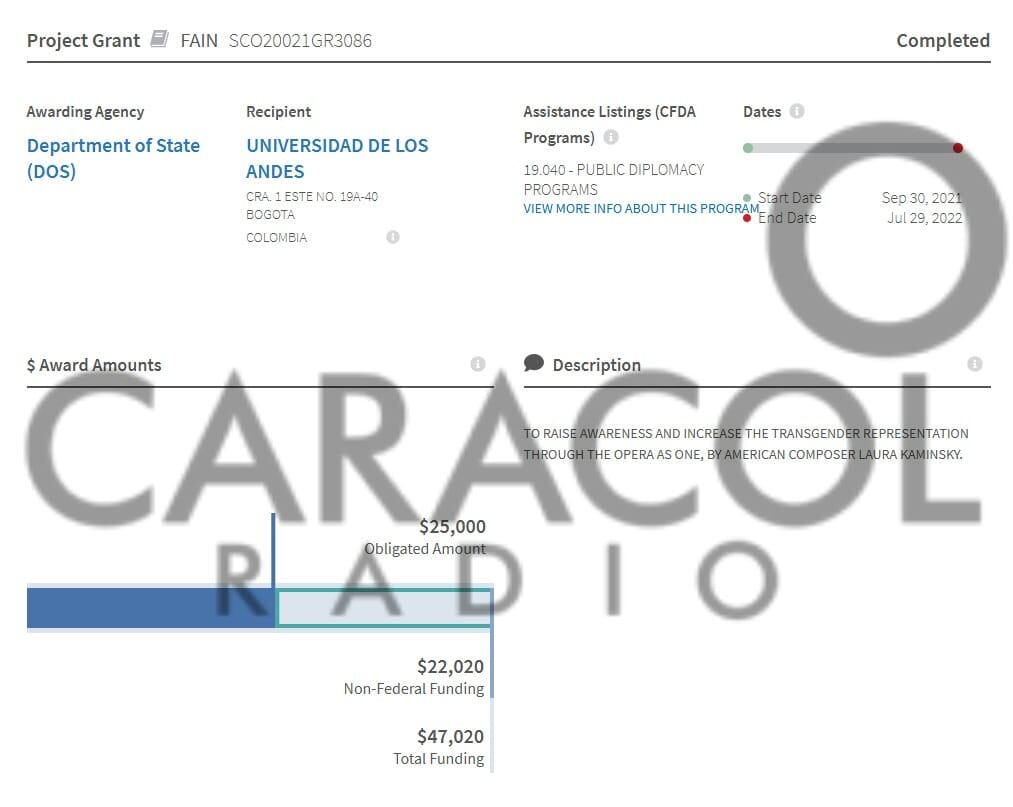 Tras explicar en qué consiste la obra y confirmar que la ópera fue presentada en distintos teatros de Bogotá durante 2022, desmintió también la cifra citada por la Casa Blanca, ratificando que recibieron “25.000 dólares para el montaje de esta obra, a nosotros no nos dieron 47.000 dólares”.