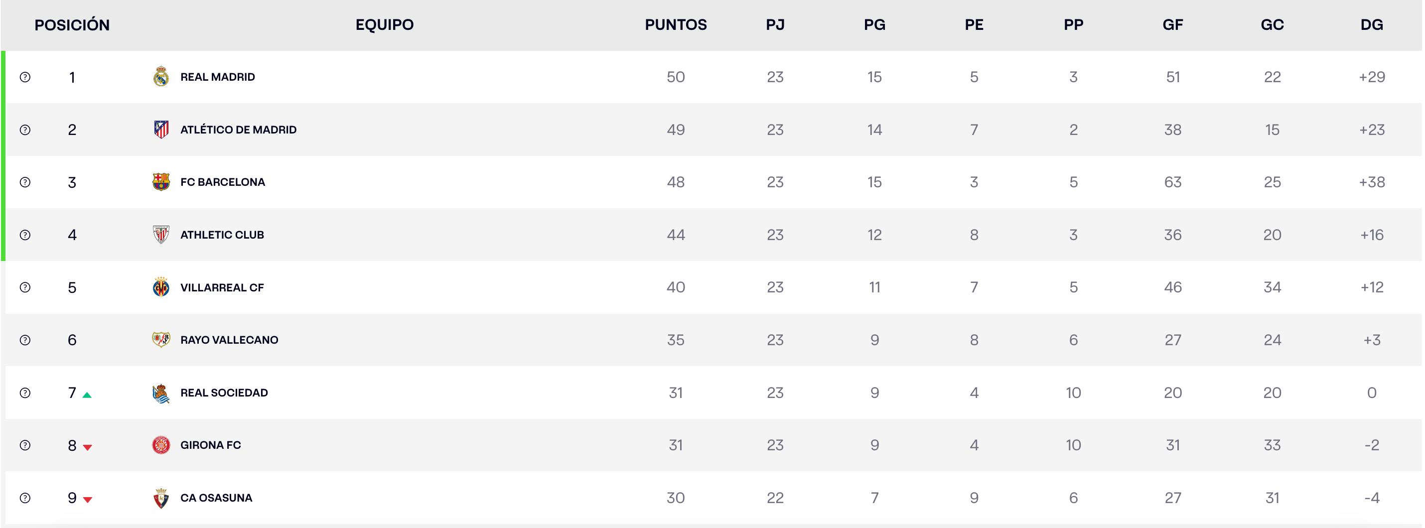 Tabla de posiciones de LaLiga