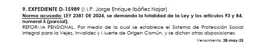 - El Instituto Colombiano de Derecho Tributario considera que el numeral 5to del artículo 84 de la Ley 2381 de 2024 debe ser declarado inexequible en la medida en que viola el artículo 48 de la Constitución Política y vulnera el sistema legal vigente al ir en contra del Principio de Unidad de materia tal como ha quedado expuesto en el presente concepto.