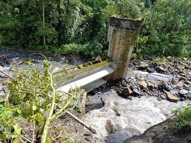 Caída de puente que comunica Sasaima con el sector de La Candelaria. Foto: Alcaldía de Sasaima.