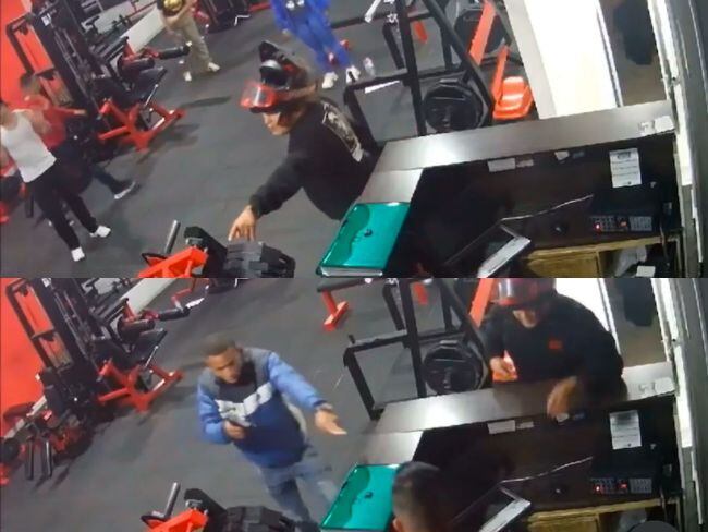 En el video se puede ver a dos hombres, uno chaqueta azul y otro con un casco rojo, que roban a los usuarios del gimnasio y a uno de los trabajadores apuntándoles con armas.