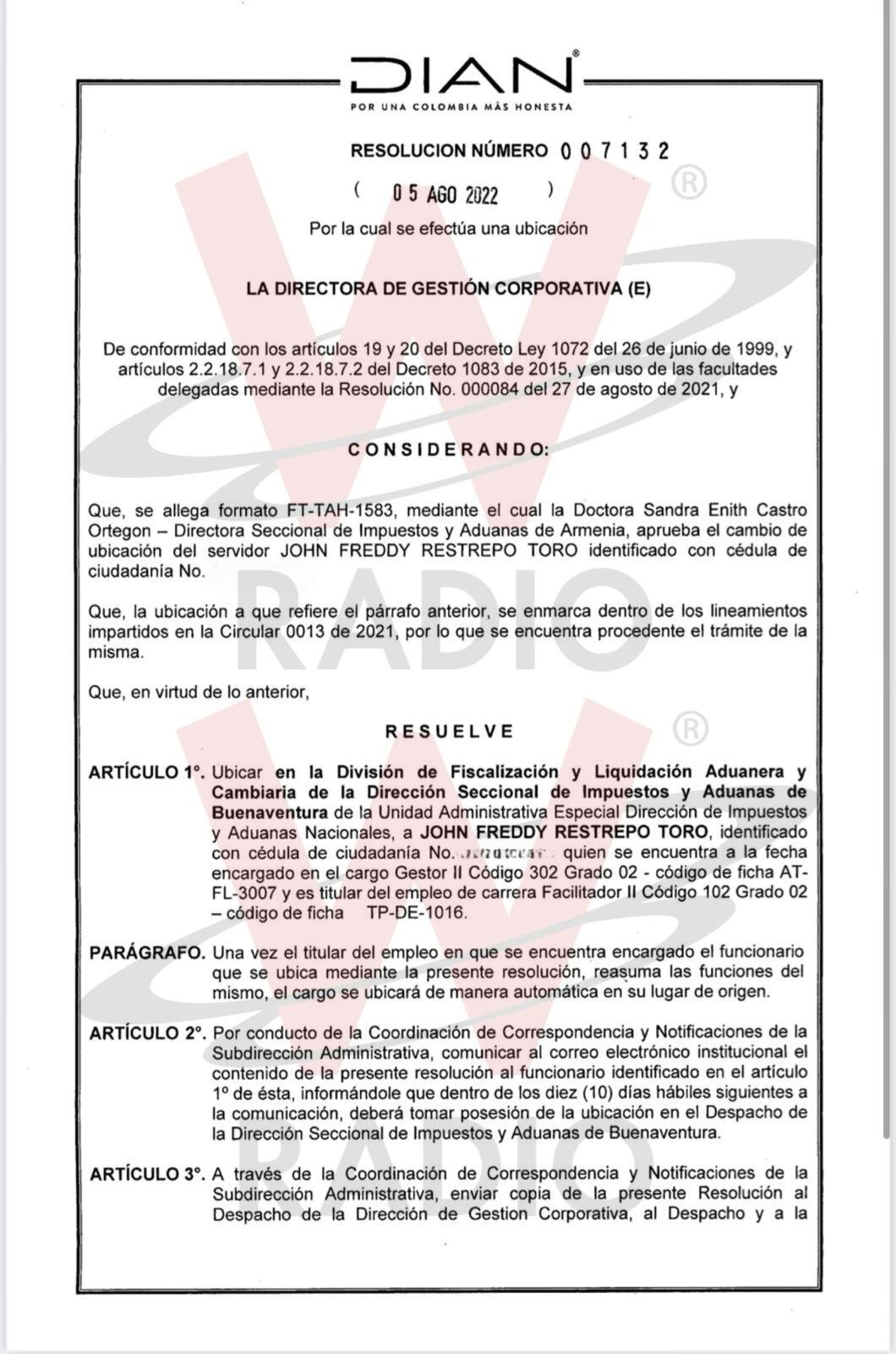 Se llama John Freddy Restrepo Toro y es un funcionario de la DIAN de carrera y sindicalizado. Dos días antes de que se acabara el gobierno de Iván Duque, fue nombrado director de Fiscalización Aduanera de Buenaventura. Un cargo muy importante. porque esa dependencia se encarga de verificar, detectar y controlar hechos, operaciones o situaciones que puedan ser de riesgo. Es decir, si hay contrabando.