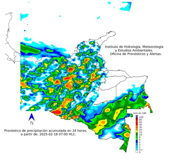 En este punto de la semana se espera un aumento significativo de la nubosidad y las lluvias en el Oriente de la región de la Orinoquía. En la región Pacífica, Amazonía y la Andina continuarán las precipitaciones con posibilidades de tormentas eléctricas y ráfagas de vientos.