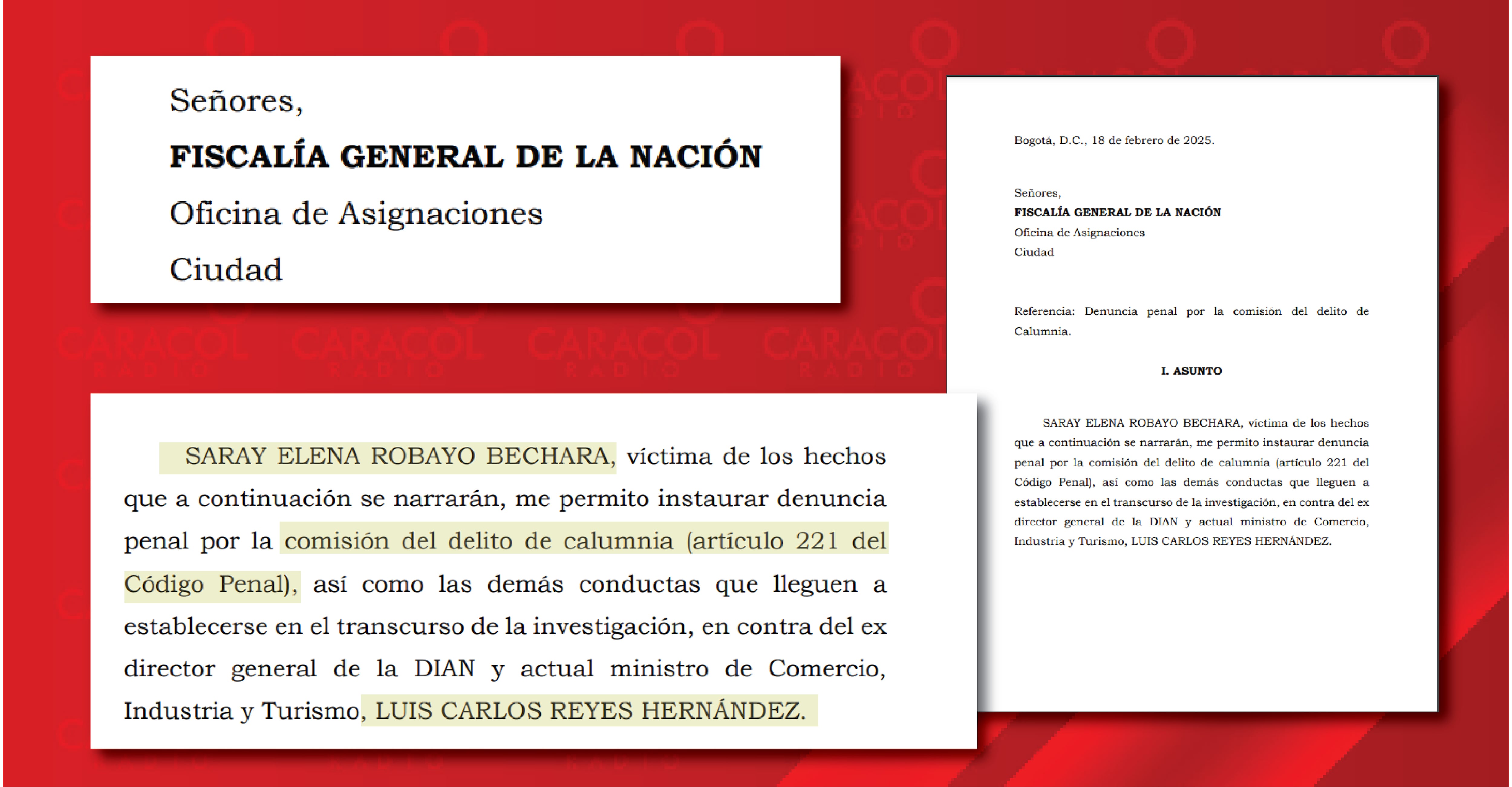 “La afirmación falsa de que la congresista SARAY ELENA ROBAYO exigió al director de la DIAN mantener a un funcionario de la entidad en el cargo se plasmó en un documento en el que, en forma clara, concreta y categórica se hizo dicho señalamiento, conocido ya públicamente y divulgado en medio de comunicación del orden nacional y territorial, poniendo en escarnio público la honorabilidad de la respetada congresista”, se lee en el documento.