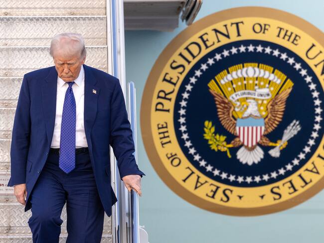 -FOTODELDÍA- WEST PALM BEACH (Estados Unidos), 15/02/2025.- El presidente estadounidense Donald J. Trump desciende del Air Force One después de llegar al aeropuerto de West Palm Beach en West Palm Beach, Florida, EE.UU., el 14 de febrero de 2025. EFE/CRISTOBAL HERRERA-ULASHKEVICH / CRISTOBAL HERRERA-ULASHKEVICH (EFE)