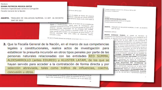 El informe está firmado por Andrés Idárraga, secretario de la Transparencia de la Presidencia de la República y detalla que, presuntamente, personal detrás de esas tres entidades estarían inmersos en un entramado que conseguiría contratos bajo el tráfico de influencias, cohecho, concusión y otros delitos.