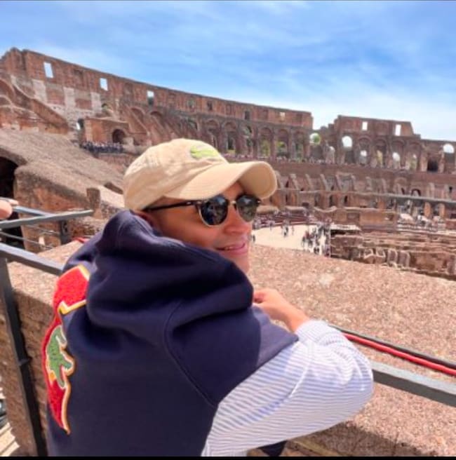 También lo vemos visitando el Coliseo Romano: