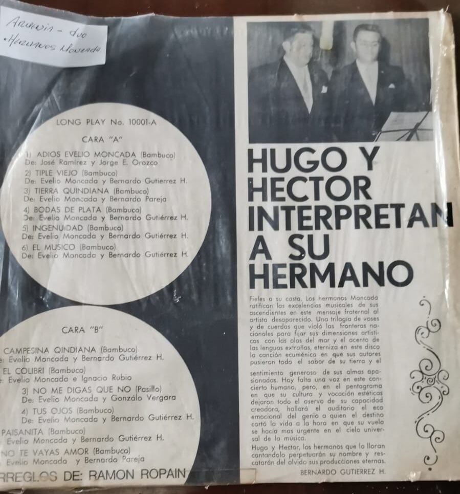 Este texto de Jorge Eliecer Orozco con la música también de maestro José Ramírez describe perfectamente digamos que uno de los aportes que Evelio deja en la memoria de los quindianos. La memoria de Evelio se mantiene viva en el desarrollo del concurso nacional de Duetos Hermanos Moncada.