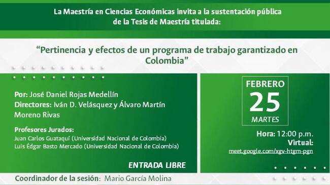 El ministro Daniel Rojas se encuentra cursando una maestría en Ciencias Económicas en la Universidad Nacional, y ayer presentó su tesis denominada “Pertinencia y efectos de un programa de trabajo garantizado en Colombia”.