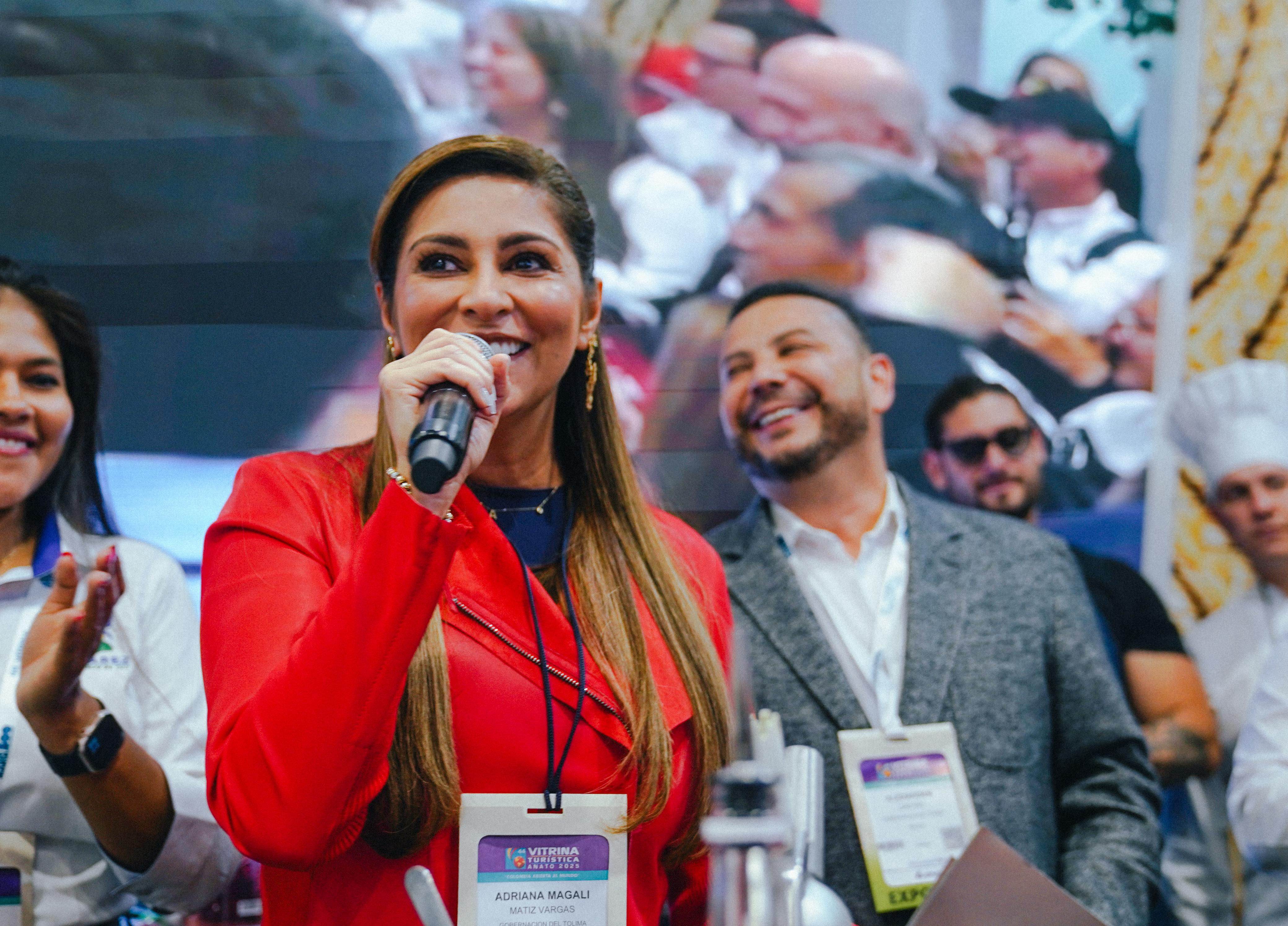 La gobernadora del Tolima, Adriana Magali Matiz, visitó el stand del departamento durante la Vitrina Turística de Anato 2025.