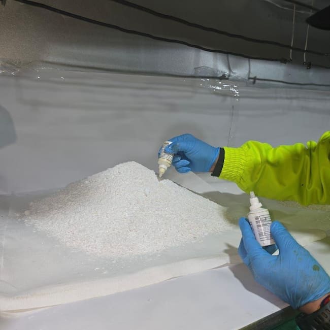 En estas estructuras fueron encontrados 800 kilogramos de clorhidrato de cocaína, más de 2200 galones de insumos líquidos y 360 kilogramos de insumos sólidos, además de un alojamiento, explicó el coronel Jhon Edwar Guerra, comandante de la Fuerza de Despliegue rápido.