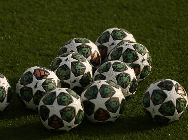 MANCHESTER, ENGLAND - FEBRUARY 18: General view of Adidas Finale Munich balls on the pitch during the UEFA Champions League 2024/25 League Knockout Play-off, Second Leg, Training Session at Manchester City Football Academy on February 18, 2025 in Manchester, England. (Photo by Carl Recine/Getty Images) / Carl Recine