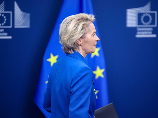 Brussels (Belgium), 04/03/2025.- EU Commission President Ursula von der Leyen attends a press conference on a defense package aimed to secure Ukraine and Europe, at the European Commission in Brussels, Belgium, 04 March 2025. US President Donald Trump announced to put on hold military aid to Ukraine. (Bélgica, Ucrania, Bruselas) EFE/EPA/OLIVIER MATTHYS / OLIVIER MATTHYS (EFE)