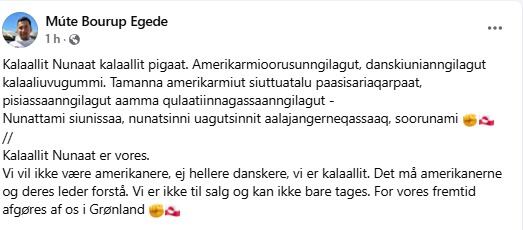 “Somos groenlandeses. Los estadounidenses y su líder deben entenderlo. No estamos en venta y no pueden adquirirnos sin más, porque nuestro futuro lo decidimos nosotros en Groenlandia”, escribió el mandatario en su cuenta de Facebook.
