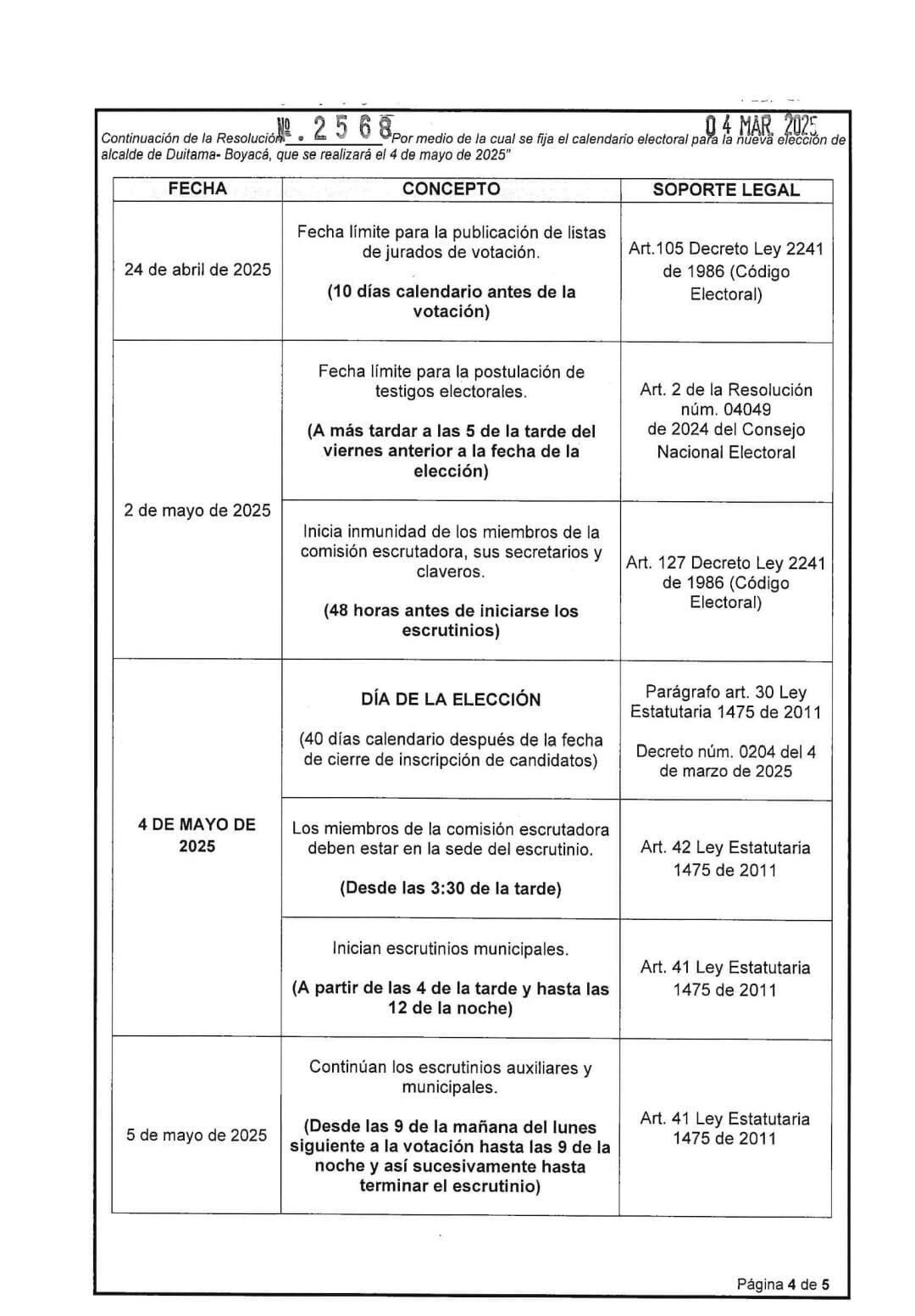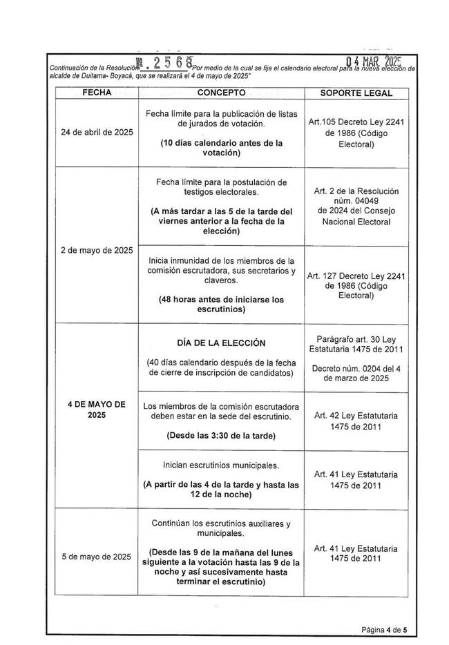 Calendario electoral elecciones atípicas en Duitama, Nuevo Colón y La Victoria, Boyacá.