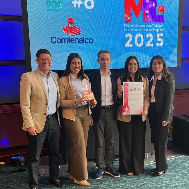 El compromiso de Comfenalco con la equidad, la formación y el crecimiento profesional de sus colaboradores, especialmente de las mujeres, ha sido reconocido con el puesto 6, en la categoría entre 201 y 900 colaboradoras, por el Great Place to Work® Institute, que ha distinguido a la organización como uno de los Mejores Lugares para Trabajar™ en Colombia para las Mujeres en 2025.