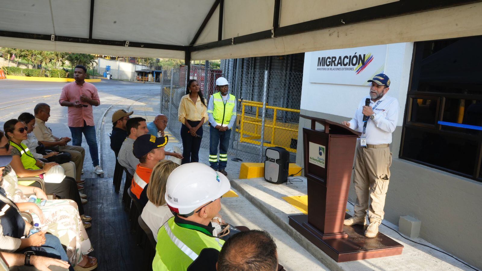 Durante el evento de inauguración, que se llevó a cabo en las instalaciones del Puerto de Santa Marta, se contó con la participación de Migración Colombia, organismos de seguridad como la Secretaría de Gobierno, Policía, y el presidente de la Sociedad Portuaria, Domingo Chinea, quien destacó la importancia de este avance para el fortalecimiento de la seguridad en el sector portuario.