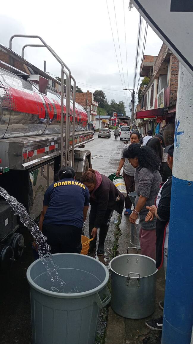 El Cuerpo de Bomberos Voluntarios de Pasto a través de carro tanques esta realizando el suministro de agua potable, por cuanto la avalancha afecto varios acueductos rurales que no han podido ser recuperados.