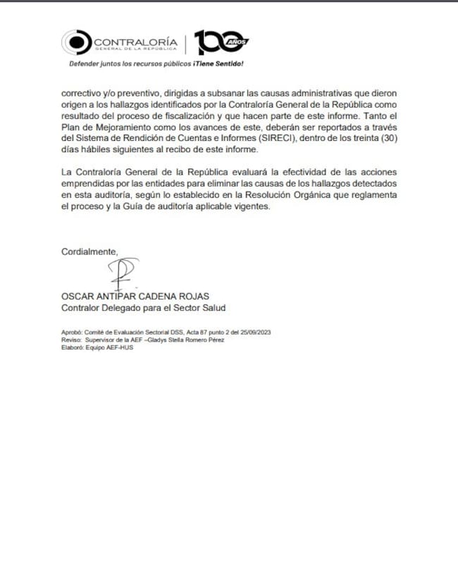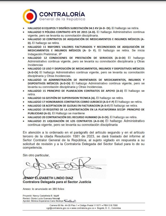 Sorpresivamente, por orden del contralor Zuluaga, a finales de 2023 se inició una revisión del informe de auditoría y en marzo de 2024 se entregaron los resultados que dejaron prácticamente por el suelo lo descubierto el año anterior por los expertos en salud de la Contraloría.