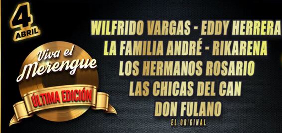 El próximo 4 de abril,en el gran pabellón de Corferias, la capital será el escenario de La última versión de VIVA EL MERENGUE, un evento que celebrará la evolución del merengue y reunirá a destacados exponentes del género, este año le dará la bienvenida a: