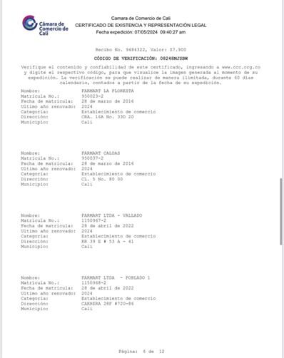 Para la fecha en que se celebró el contrato, Farmart solo tenía establecimientos farmacéuticos registrados en Cali, como demuestra el certificado de Cámara de Comercio. Es decir, no tenía establecimientos farmacéuticos habilitados ante las Secretarías de Salud en otras regiones de Colombia como exige la ley, según expertos consultados por La W, lo cual configuraría una posible celebración indebida de contratos.