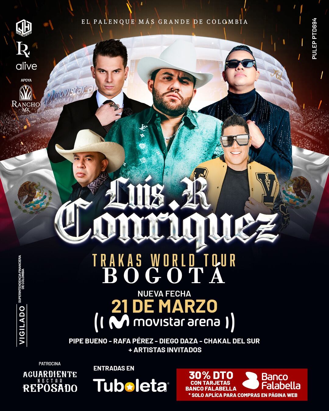 La estrella de la noche será el cantante mexicano de corridos bélicos, Luis R. Conriquez, conocido por éxitos como “Me metí en el ruedo”, “Malas rachas”, “Ahogándome en alcohol” entre otros. En la tarima del Movistar Arena estarán acompañándolo un elenco de artistas como: Pipe Bueno, Rafa Pérez, Diego Daza y Chakal del Sur. Por su parte, en Medellín estarán Yeison Jiménez, Jhon Alex Castaño, entre otros.