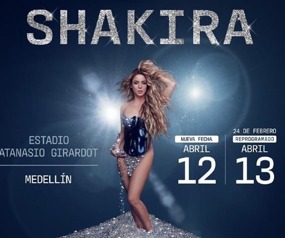 Confirmamos que la fecha del concierto aplazado en febrero de 2025 en el Estadio Atanasio Girardot se celebrará el sábado 12 de abril y, adicionalmente, la artista realizará un nuevo concierto el domingo 13 de abril de 2025. Estos dos shows de Shakira son posibles gracias al apoyo de la Alcaldía de Medellín y a las diferentes autoridades de la ciudad, a quienes agradecemos y reconocemos sus esfuerzos.